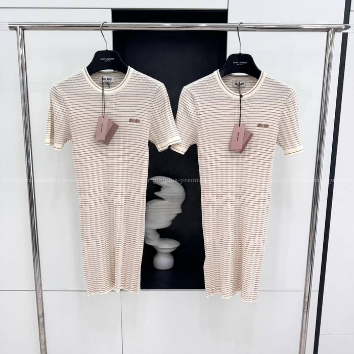 미우미우 스트라이프 니트 반팔 원피스 여성용